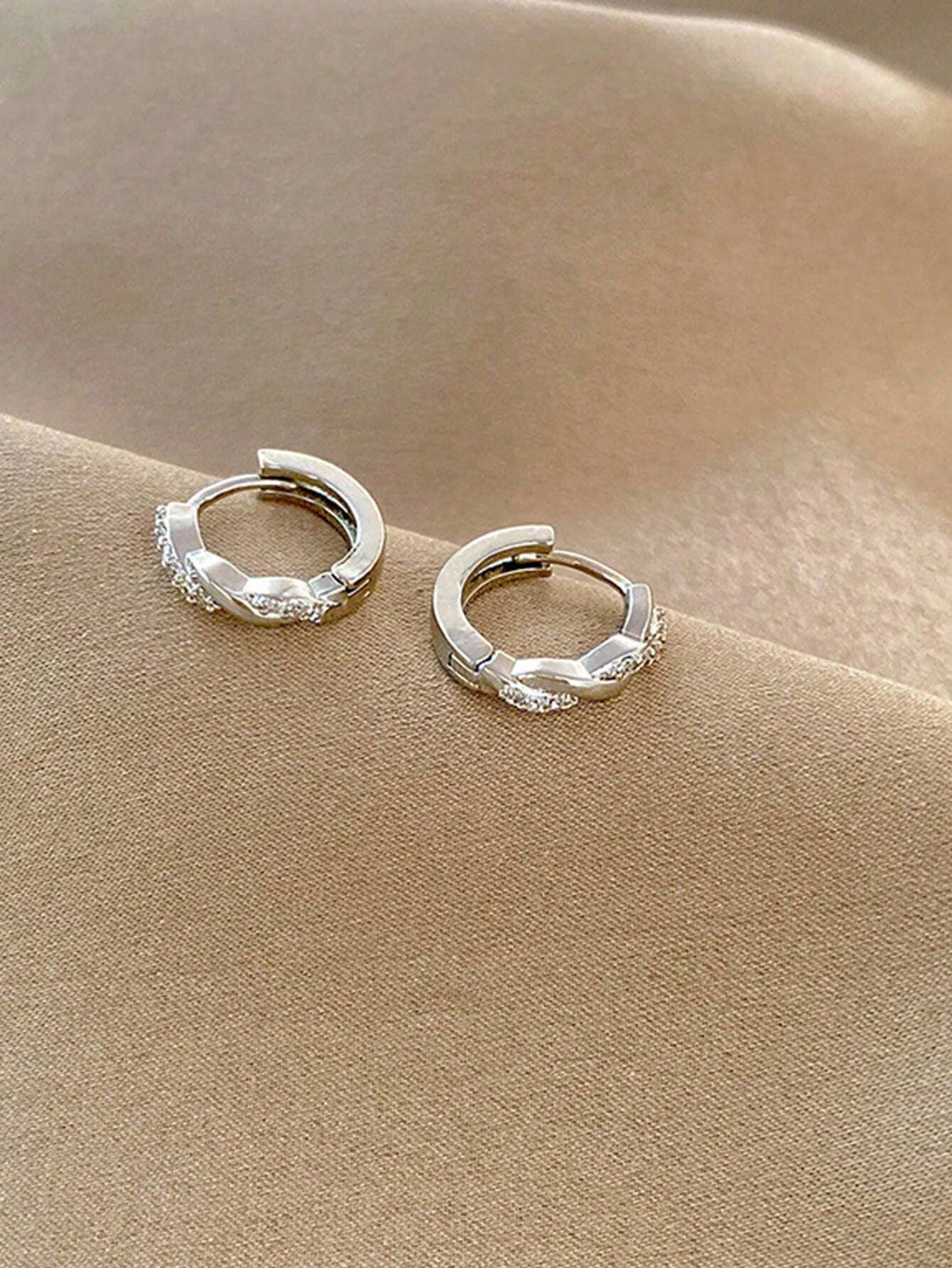 Shein 1 par de pendientes de aro trenzados con microincrustaciones de lujo