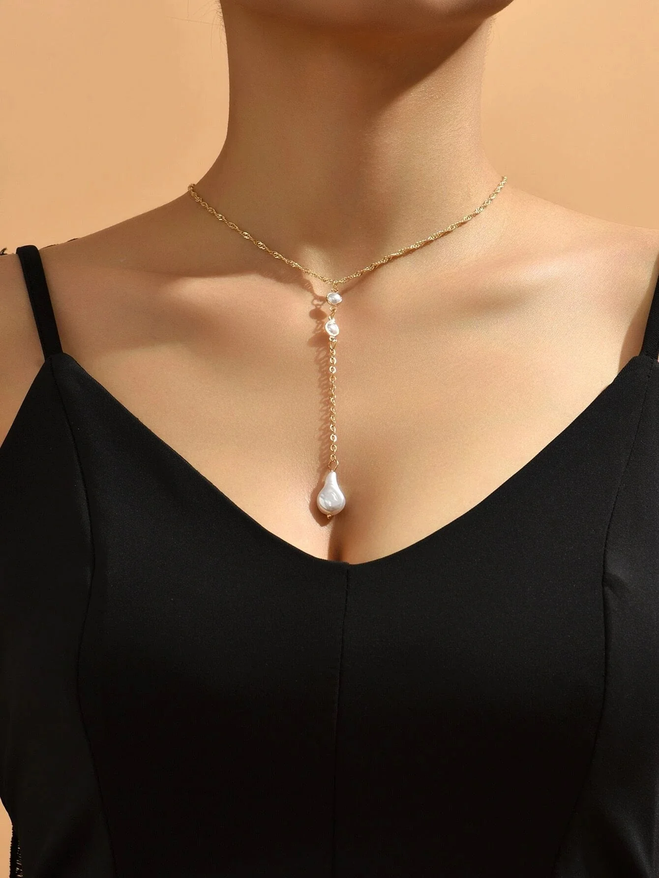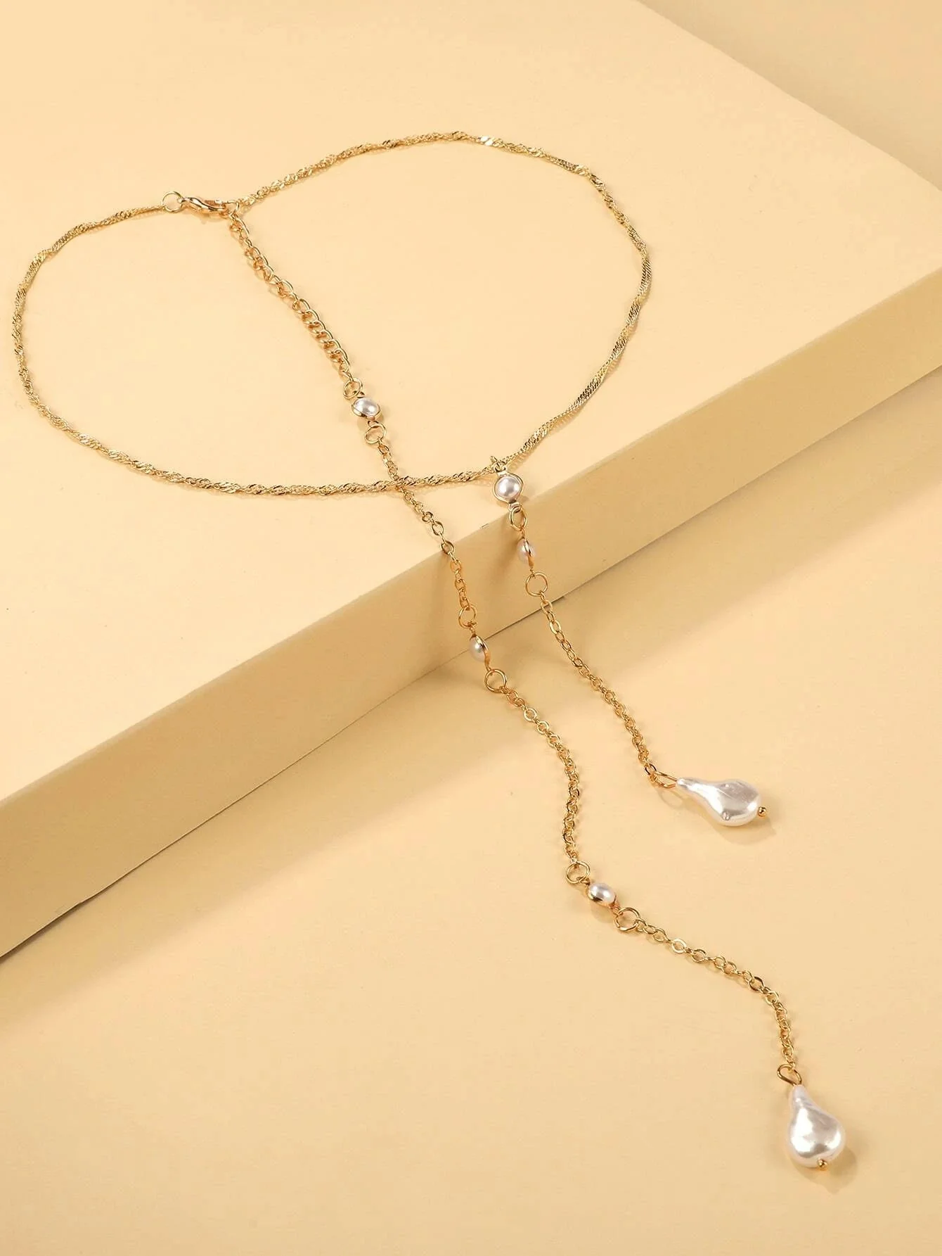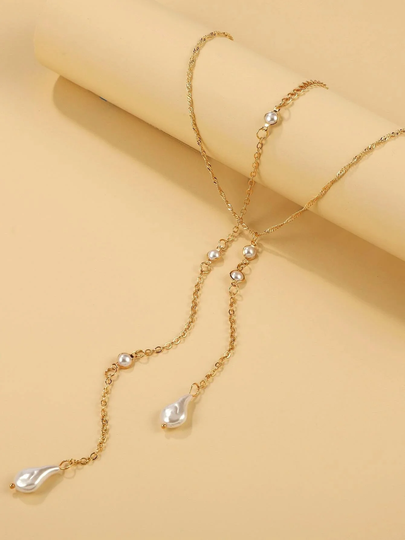 Shein Collar con lazo en forma de Y y dije de perla sintética