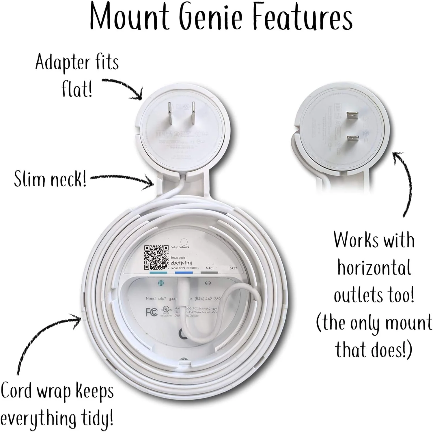 - Nuestro soporte para Google WiFi utiliza el cable que viene con tu dispositivo y lo envuelve perfectamente alrededor de nuestro patentado «Organizador de ranura de cordón»