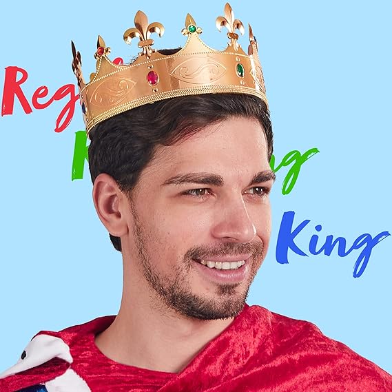 • DIVERSIÓN SIN FIN. Esta corona de cosplay ofrece joyas de varios colores que le dan un toque real; coronas de rey para mujeres, coronas de rey para hombres; disfraz de corona de rey.