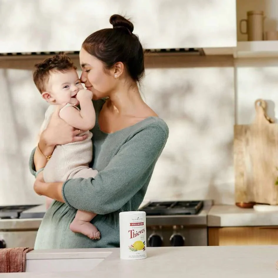 – Mezcla de aceites esenciales Thieves: Thieves es una mezcla exclusiva de Young Living que contiene aceites esenciales purificantes.