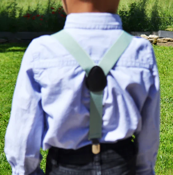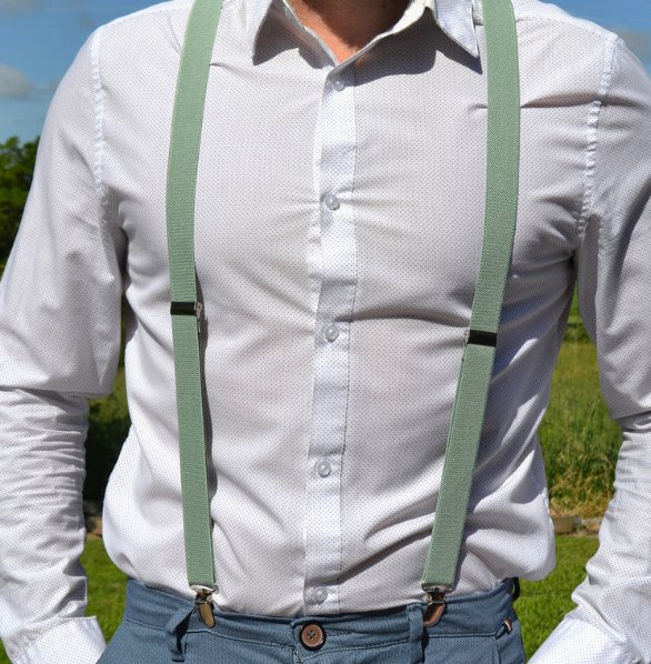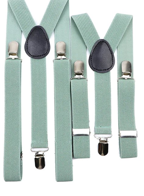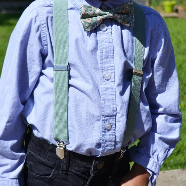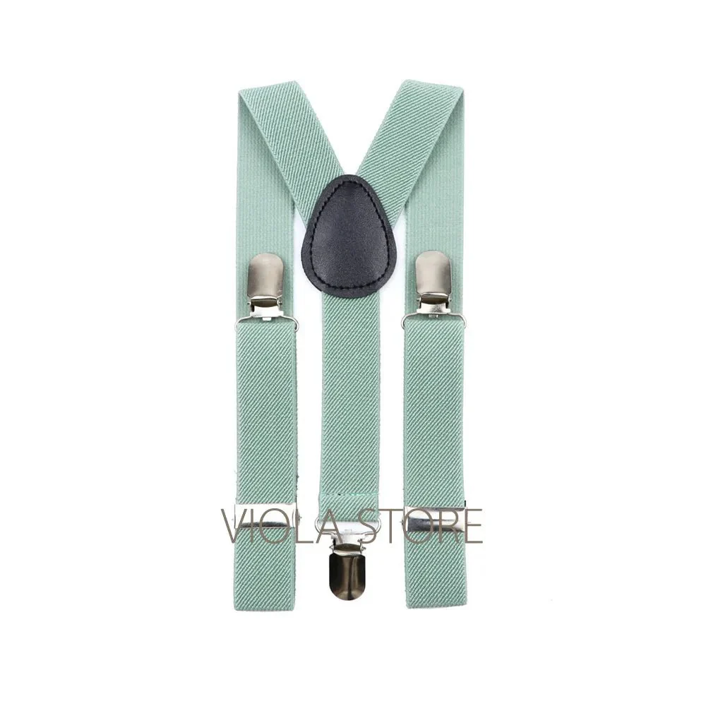 Elegantes tirantes en forma de Y en color verde salvia para niños que complementan y sujetan los pantalones o pantalones cortos de su traje de boda. Estos tirantes de color verde salvia, también conocidos como tirantes, son totalmente ajustables y elásticos para garantizar que logre un ajuste cómodo, con una espalda en Y para complementar a los adultos en la fiesta de bodas. Los clips de sujeción plateados se sujetan a la cintura de sus pantalones o pantalones cortos y le dan un toque elegante y llamativo a su traje de boda.
