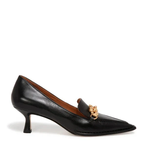 Mejore su edición informal de negocios con estos zapatos de tacón Jessa con punta puntiaguda de Tory Burch. Presentan un tacón cubierto de cuero, un detalle de cadena de metal en tono dorado y una silueta en punta.