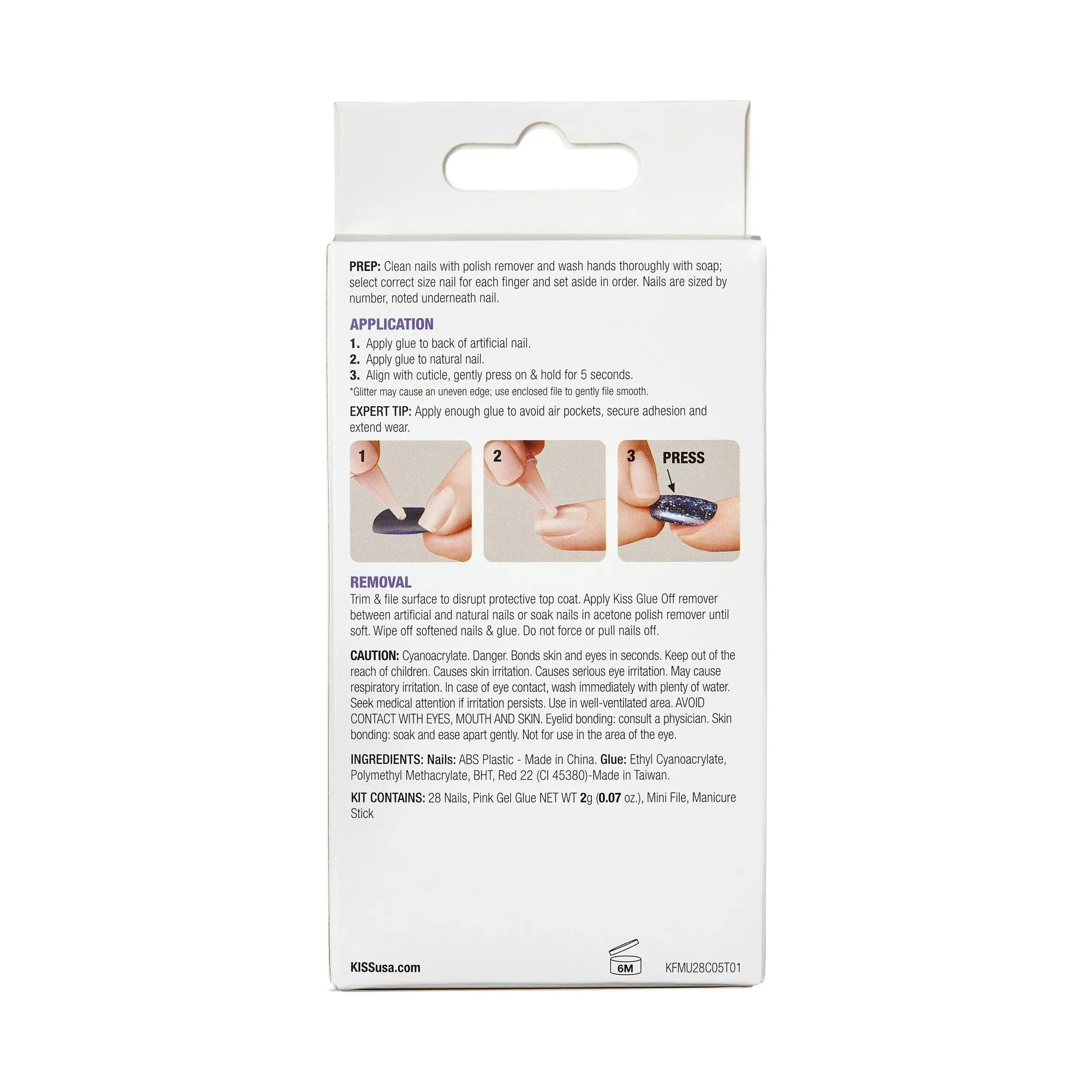 Las uñas postizas esculpidas Gel Fantasy de KISS son las más modernas de la ciudad en los últimos colores y largos de moda. Al igual que el diseño de arco alto de las uñas postizas acrílicas esculpidas en el salón de belleza, estas versiones listas para usar no requieren mucho mantenimiento y son tuyas en minutos. La manicura esculpida Gel Fantasy es duradera, flexible y dura varios días. El kit incluye: 28 uñas postizas, peso neto: 2 g (0,07 oz), pegamento para uñas en gel rosa, lima pequeña, palito de manicura e instrucciones.