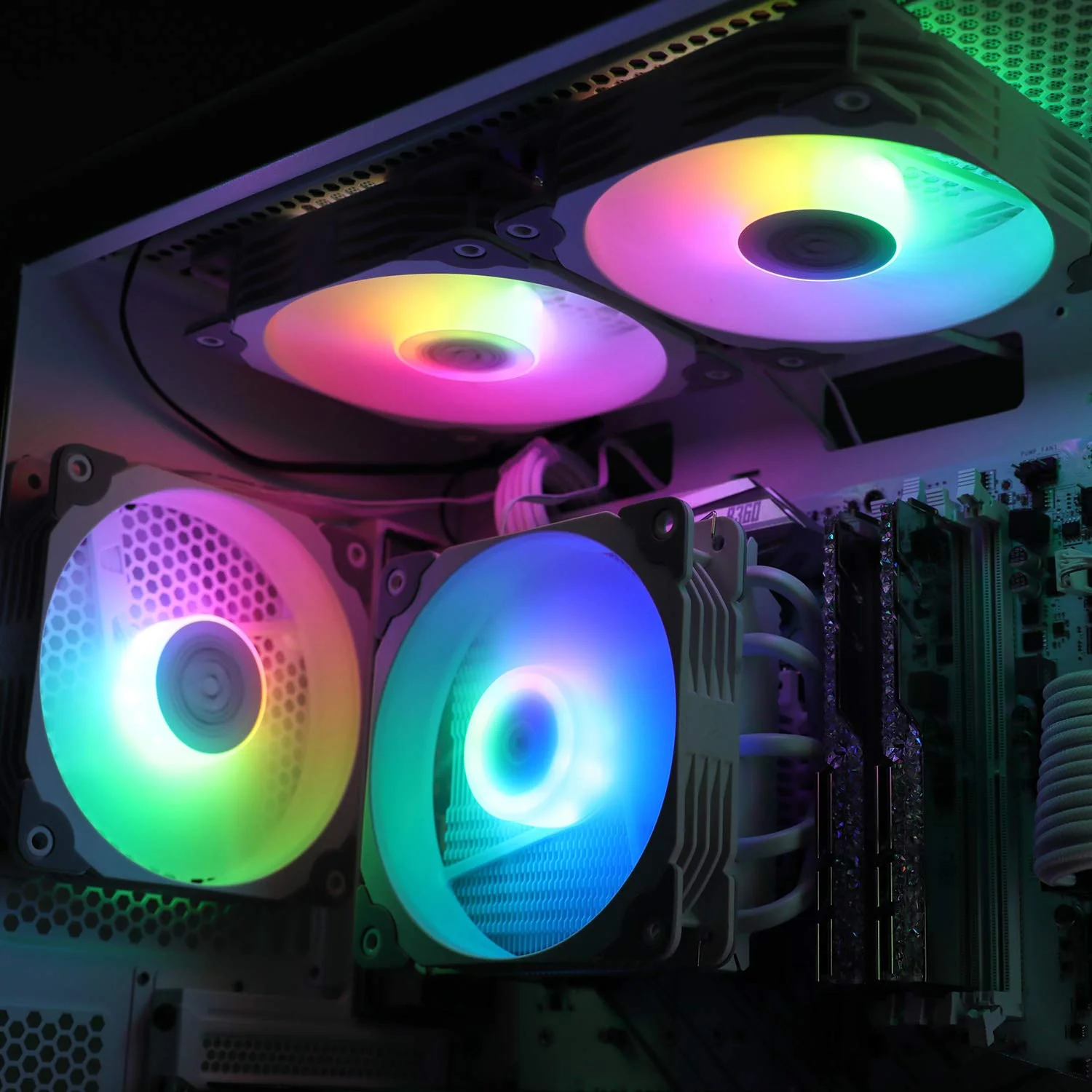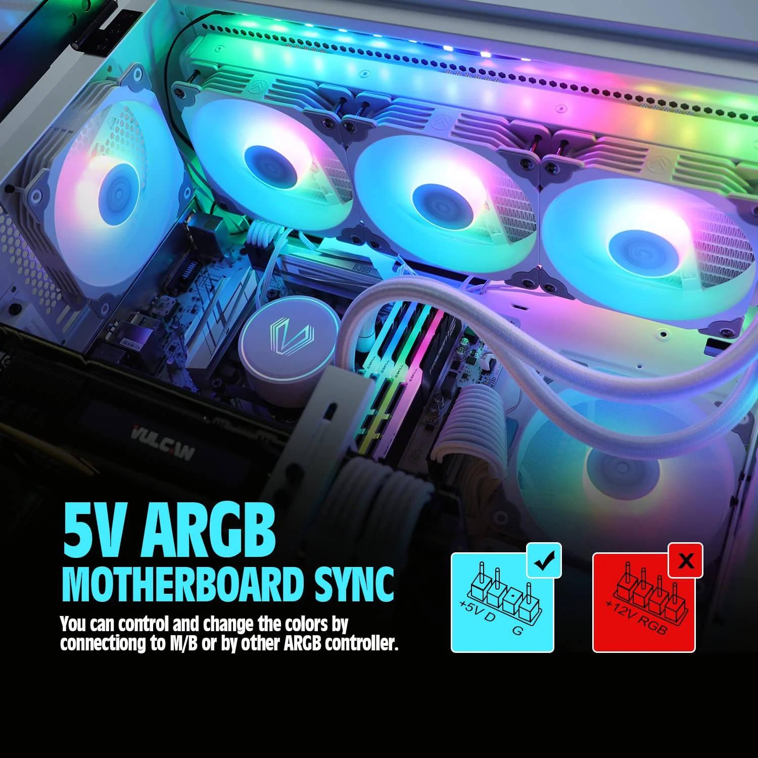 • Iluminación ARGB: La iluminación RGB se puede sincronizar con la placa base direccionable de 5V y se puede instalar fácilmente conectando el encabezado RGB estándar de 5V 3PIN al encabezado ARGB de la placa base, le permite elegir su iluminación rgb preferida en cualquier momento.