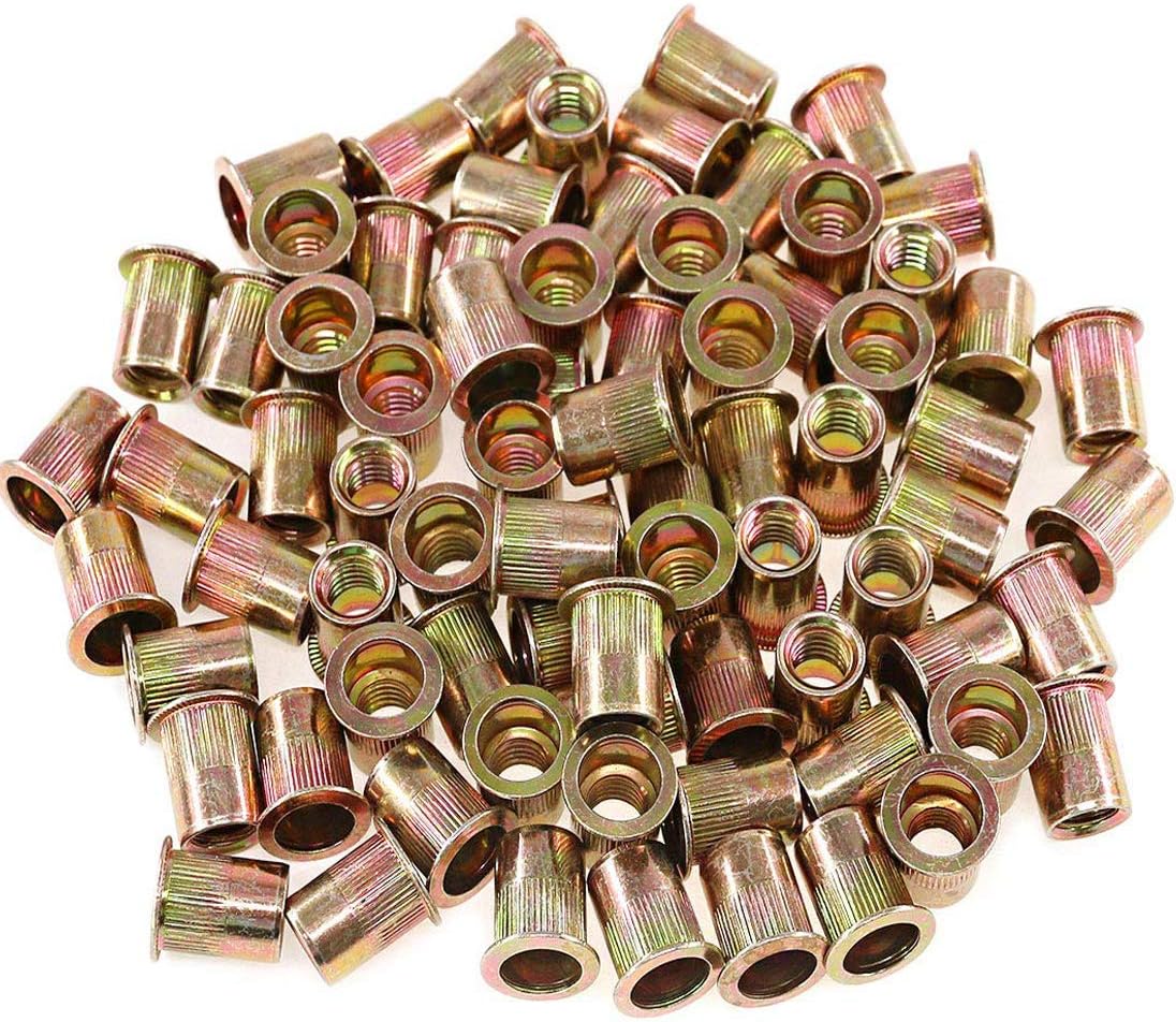 ✔ 【Alta calidad】Las tuercas de remache están hechas de acero al carbono, fuerte resistencia al óxido y a la corrosión para un uso prolongado; la superficie chapada en zinc ayuda a prevenir daños y decoloración superficiales, antioxidante, saludable y sin plomo, alta resistencia, no se deforma, roscas de carga.